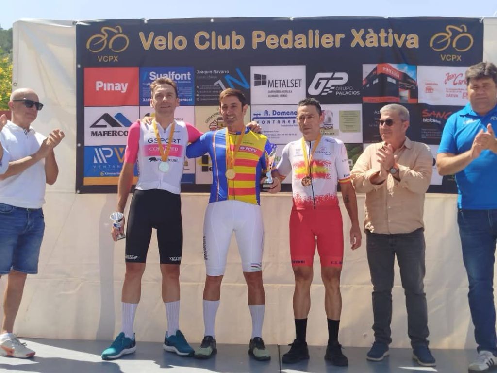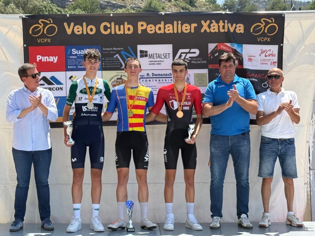 Xavi Arnal (JuanGiner Ulevel Vitaldinsport) es el nuevo campeón Cadete de la Comunidad de Contrarreloj. Se ha impuesto en la pimera manga de la prueba disputada en Xàtiva. Su compañero de equipo Vicent Andrés ha sido segundo y Oriol Blasco (Sumistock), tercero. También han conquistado el maillot autonómico Raúl Patiño (Horadada), en M50; Antonio Torres (Aquan), en M60; Héctor Acebedo (Sumistock), MC Escolar; Johannes Bertus (Van der Heijden), en MH3; y Pablo Torres (Unlimited), en MT1. Clasificaciones. Manga 1.