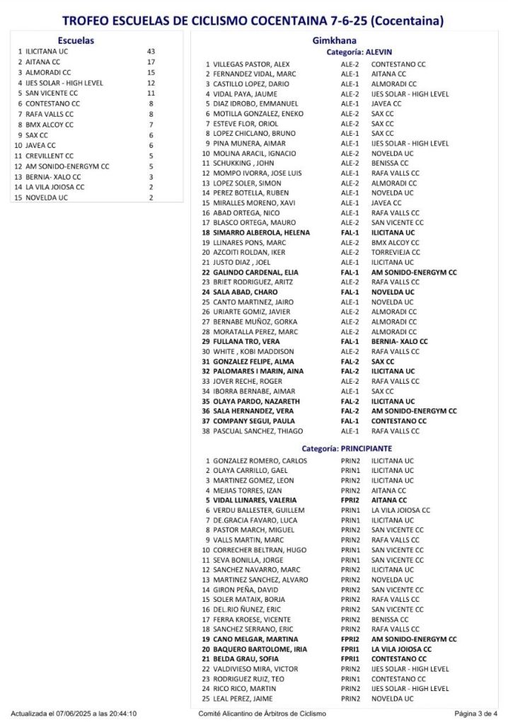 18/05 TROFEO ESCUELAS DE CICLISMO VILAJOIOSA. Clasificaciones