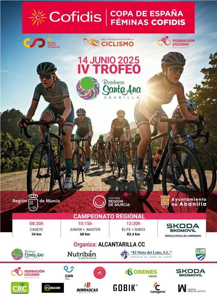 Tras la celebración el pasado fin de semana de la quinta cita puntuable en Estella, la Copa de España Féminas Cofidis pone rumbo hasta tierras murcianas para disputar la penúltima prueba de la competición nacional, el Trofeo Residencia Santa Ana de Abanilla, que este año celebra su cuarta edición y donde se espera que el intenso calor vuelva a ser uno de los grandes protagonistas como ya ocurriese en 2024.