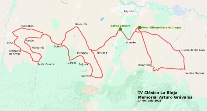 El recorrido de 122 kilómetros pasará por Lardero, Entrena, Navarrete, Ventosa, Huércanos, Arenzana de Arriba, Bezares, Santa Coloma, Manjarrés, Alesón, Sotés, Daroca, Sorzano, Entrena, Alberite, Ribafrecha, Ventas Blancas. La meta volante estará situada en la localidad de Villamediana de Iregua.