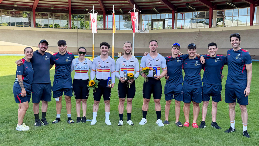 El equipo de velocidad compuesto por Alejandro Martínez, Pepe Moreno y Esteban Sánchez ha conquistado la medalla de plata en el prestigioso Gran Premio de Alemania de Cottbus, que ha celebrado hoy su segunda jornada. Alejandro Martínez, Pepe Moreno, Esteban Sánchez solo se han visto superados por el equipo compuesto por Colin Rudolph, Luca Spiegel y Nik Schröter. Los españoles han parado el reloj en 60.496 por los 60.283 de los primeros clasificados, dejando la actuación más destacada para la Selección Española durante el fin de semana.