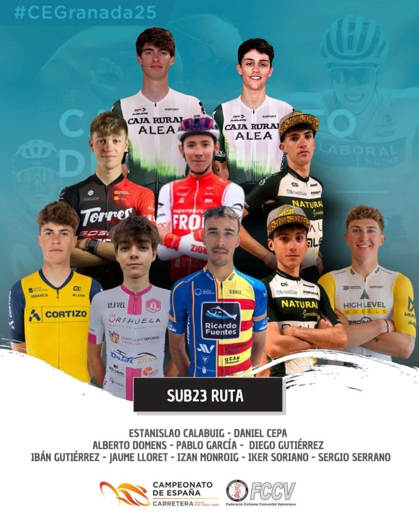 ▪️16:30h | Ruta Sub23: Estanislao Calabuig, Daniel Cepa, Alberto Domens, Pablo García, Diego Gutiérrez, Ibán Gutiérrez, Jaume Lloret, Izan Monroig, Iker Soriano y Sergio Serrano.