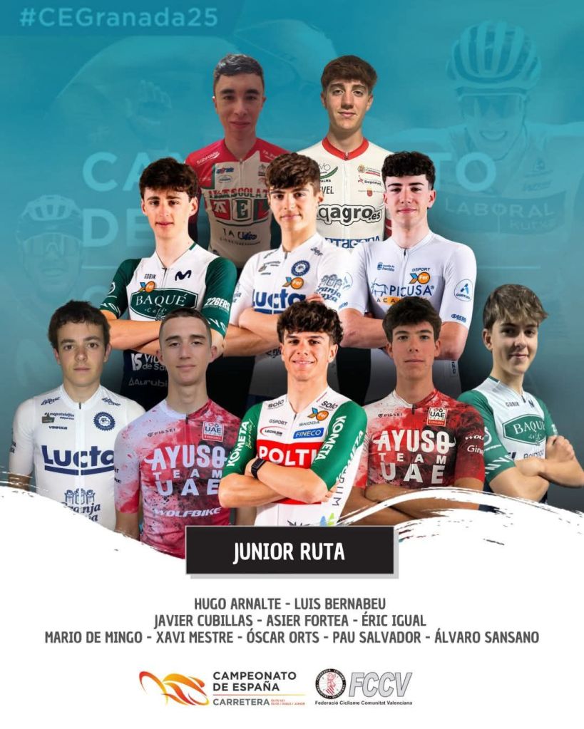 ▪️11:30h | Ruta Junior: Hugo Arnalte, Luis Bernabeu, Javier Cubillas, Asier Fortea, Éric Igual, Mario de Mingo, Xavi Mestre, Óscar Orts, Pau Salvador y Álvaro Sansano.