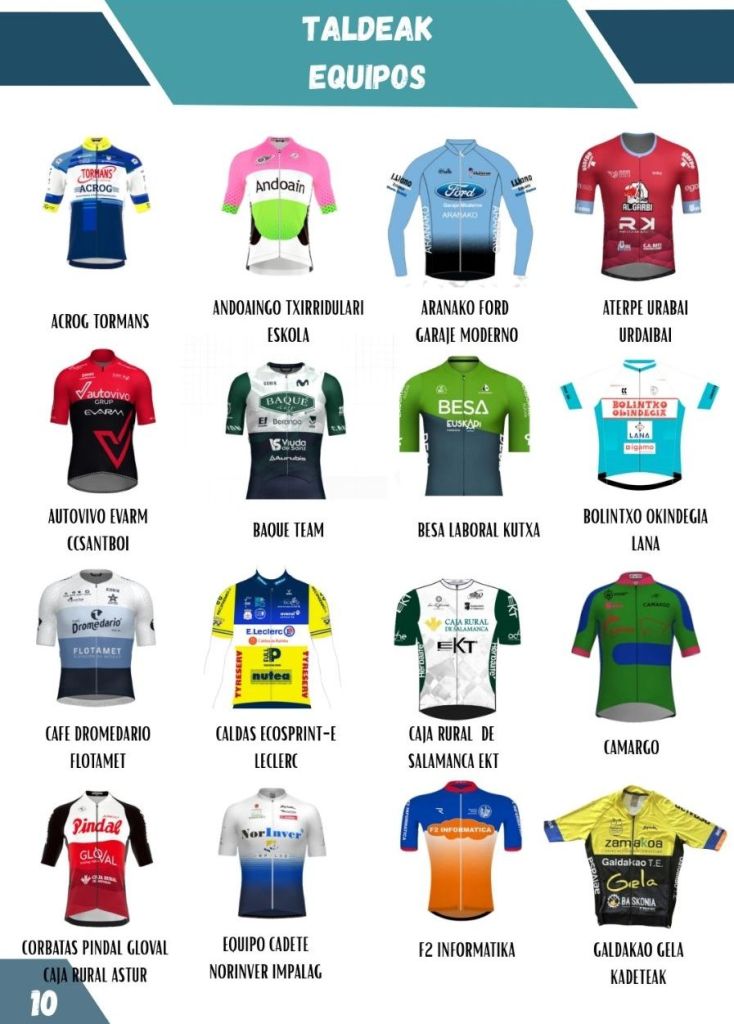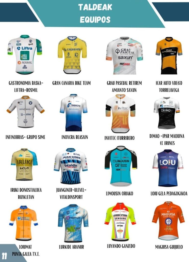 Acuden a la cita vasca Infinobras-Grupo Sime (Jaume Ruiz, Borja Giménez, Jordi White, Borja Ferrándiz y Miguel Navarro), Grau Pascual Retirem Amianto Saxun (Samuel Pastor, Marc Mira, Álvaro Hernández, Alejandro Guijarro y Pere Fullana) y JuanGiner Ulevel Vitaldinsport (Vicent Andrés, Xavier Arnal, Dani González, Marcos Sánchez y Álex Beltrán).