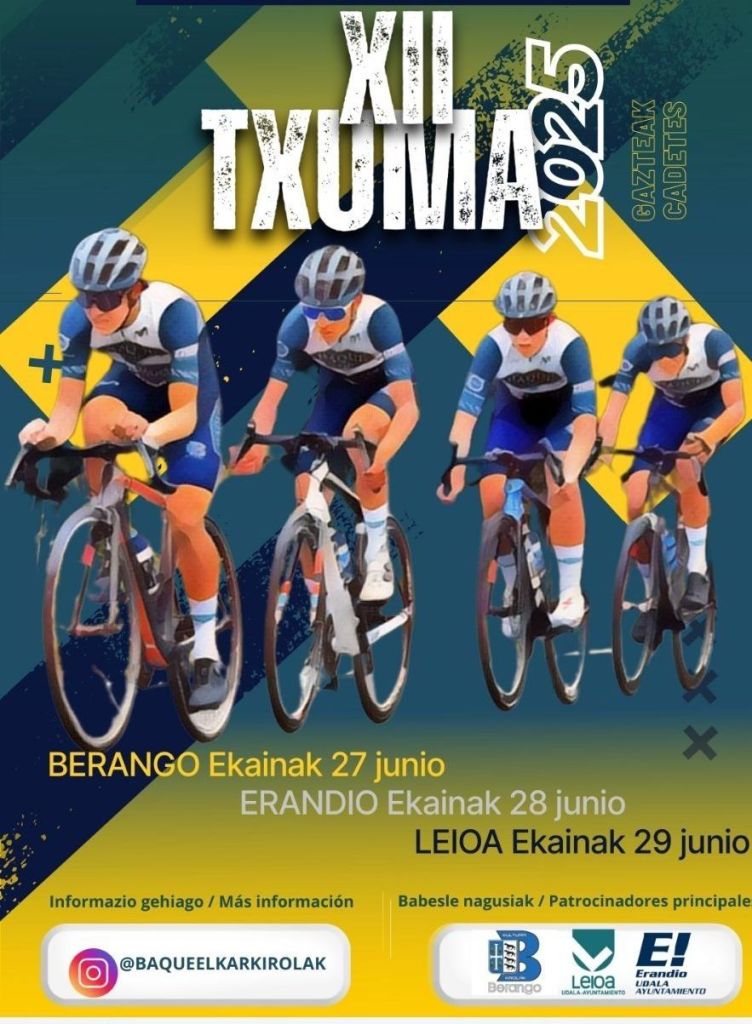 Hoy, viernes, 27 de julio, comienza una nueva edición de la ‘Txuma’ Cadetes-Txumaren Nazioarteko Hiru Egunak. Con la organización de la sociedad vizcaína Elkar Kirolak, la carrera contará con 43 equipos. Se disputará los días 27, 28 y 29 de julio en Berango, Erandio y Leioa.
