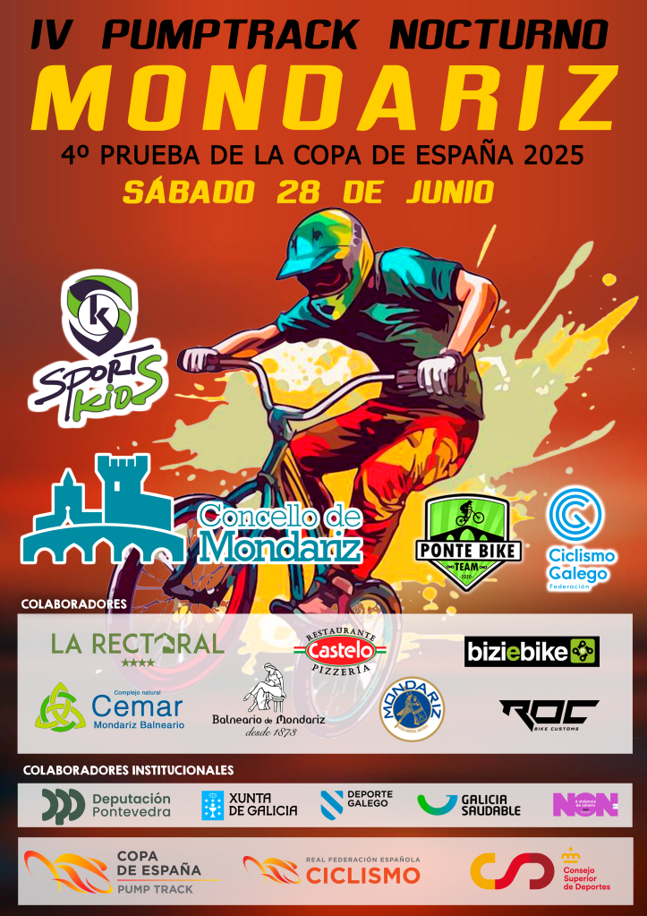 La Copa de España de Pump Track celebra este sábado 28 de junio su cuarta prueba del calendario con la disputa en tierras gallegas del IV Pumptrack Nocturno Mondariz.