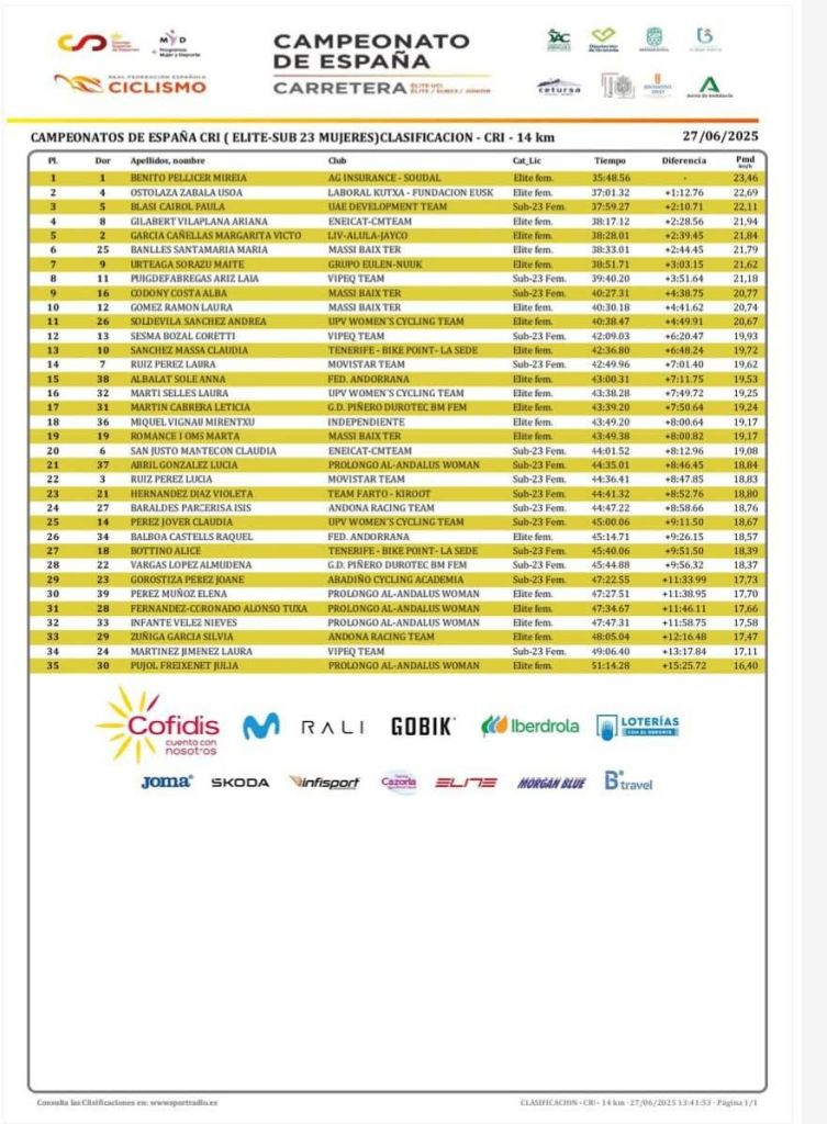 Blasi, tercera y campeona de España sub23. Andrea Soldevilla ha terminado en el puesto 11, octava como Élite; Laura Martí, 16-11; y Claudia Pérez, 25, y undécima en Sub 23.