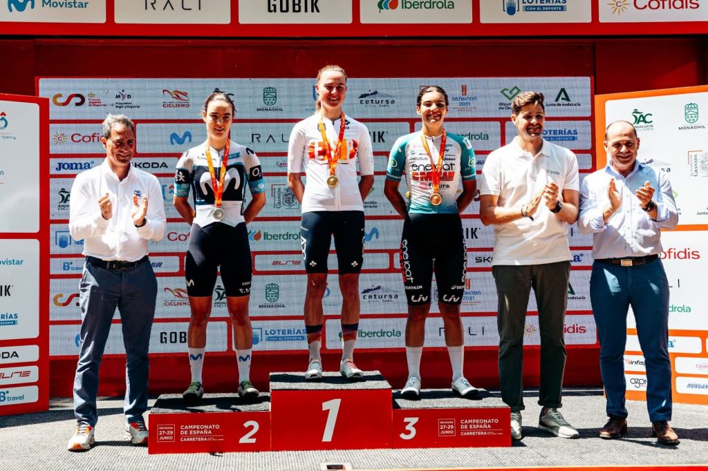 La ciclista del Movistar Team ha conseguido marcharse en el tramo de descenso junto a Mavi García, a la que ha batido con claridad al sprint para ganarse el derecho a portar el maillot de campeona nacional durante el próximo año.