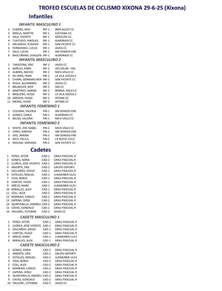 18/05 TROFEO ESCUELAS DE CICLISMO VILAJOIOSA. Clasificaciones
