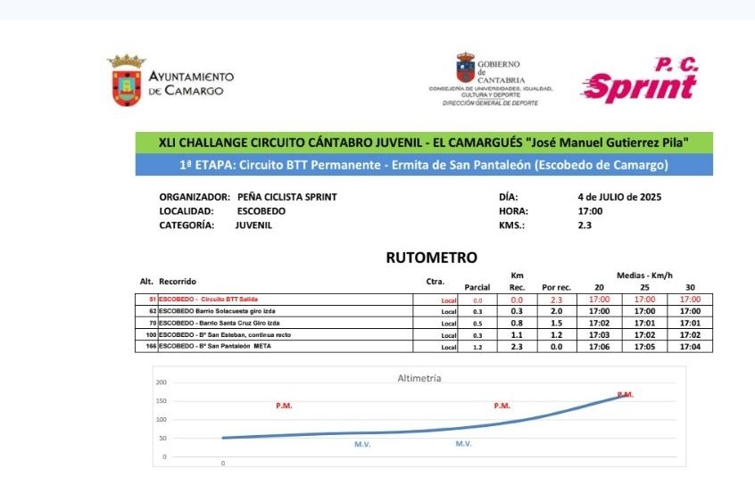 El viernes a las 17:00 horas arrancará la cita con una contrarreloj de 2 kilómetros y cien metros con llegada a la Ermita de San Pantaleón en Escobedo de Camargo.