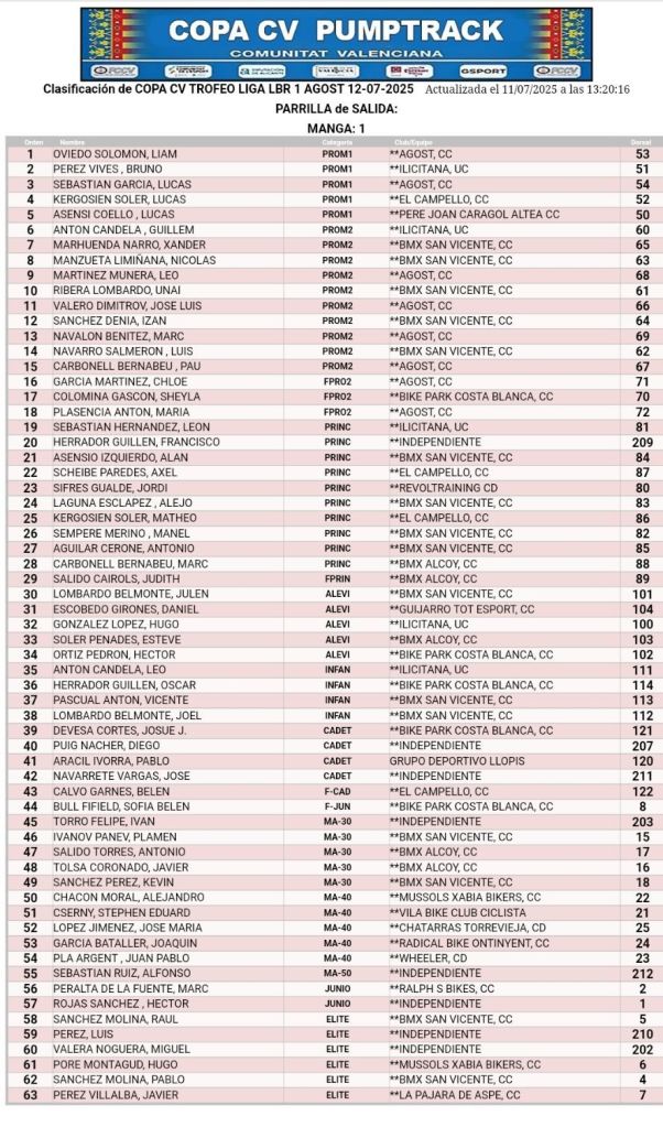 Agost dara inicio el sábado, 12 de julio, a la Copa de la Comunidad Valenciana de 𝙋𝙪𝙢𝙥𝙏𝙧𝙖𝙘𝙠. El recinto agostense inaugura tambien la Liga LBR para las otras disciplinas de Skates y Rollers.La competición comenzará a las 18 horas y cuenta con 68 inscritos.