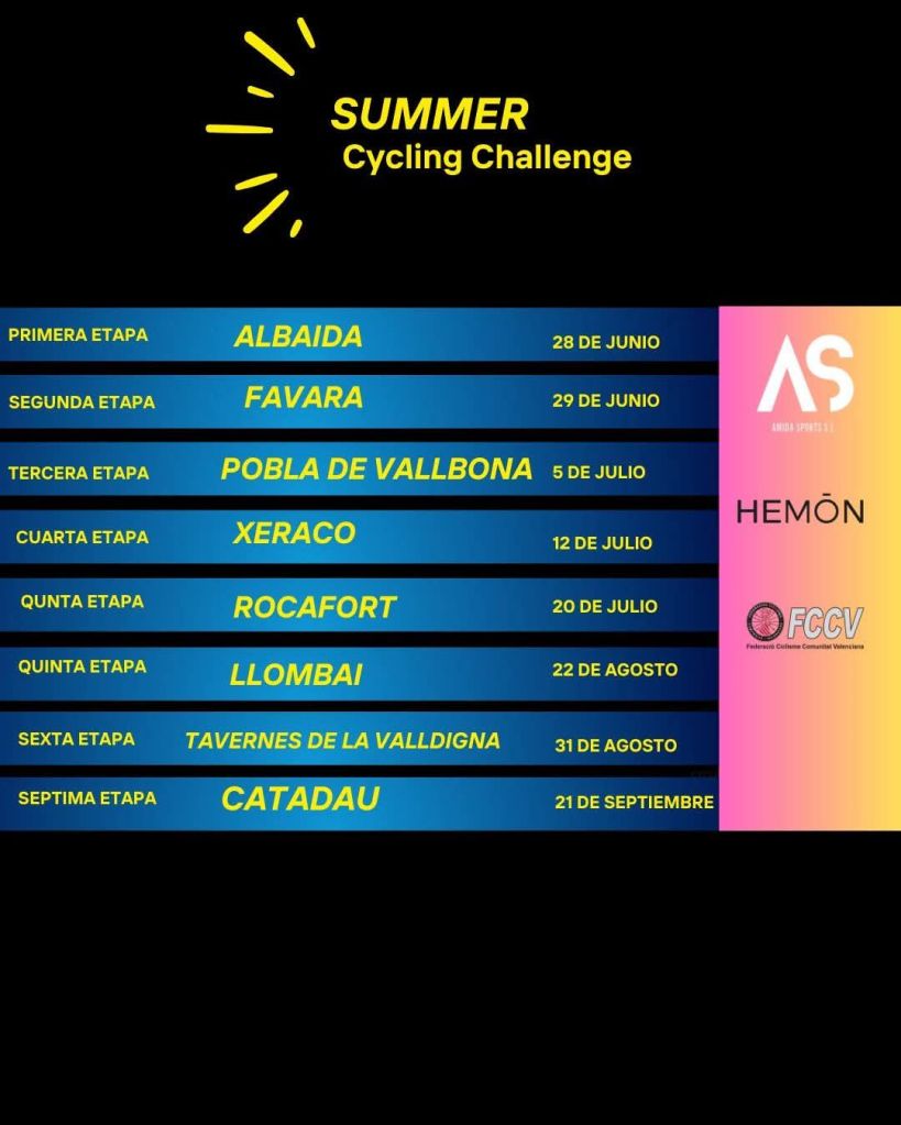 El sábado, día 12 de julio, se disputa el Trofeo Social Xeraco organizado por la Penya Cyclista local. Dará comienzo a las 18 horas y contará con 65 kilómetros de recorrido. Tendrá salida y meta en la Ronda Bruguieres. Hector Celda lidera la Summer Cycling Challenge.