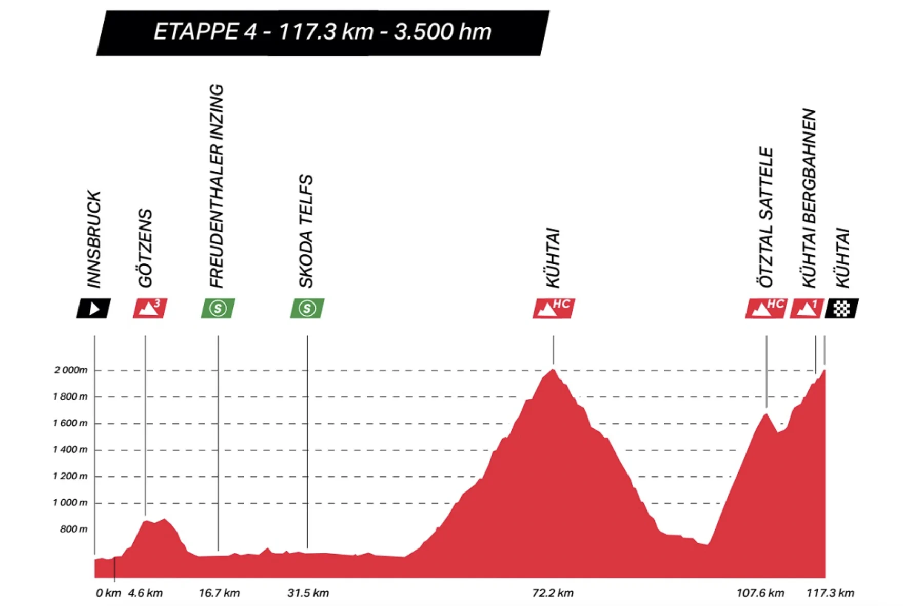 4ª Sábado 12 julio. Innsbruck-Kühtai, 117,1km
