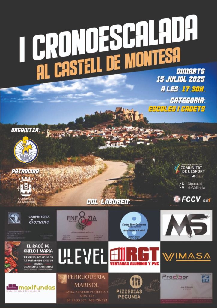 La localidad de Montesa acoge el próximo martes, 15 de julio, a partir de las 17:30 horas, una prueba para las categorías de Escuelas de Ciclismo y Cadetes.