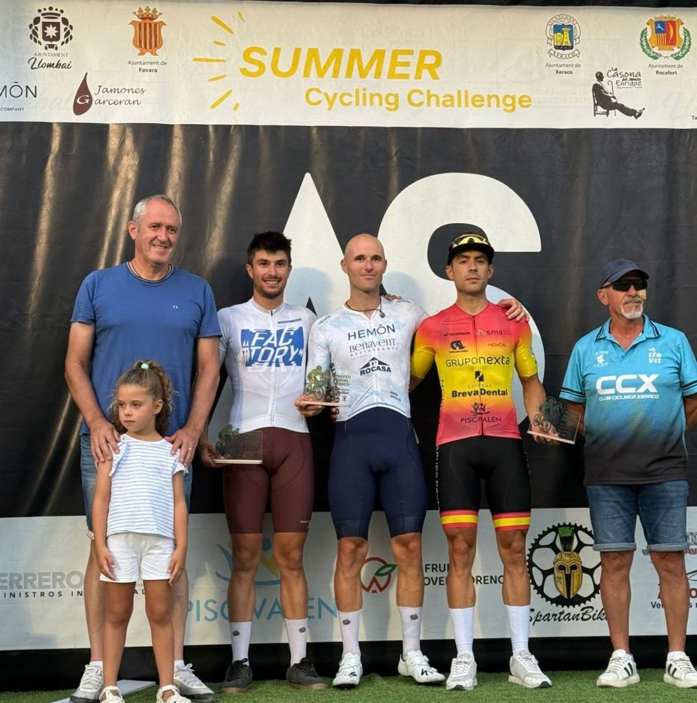 Ferrán Miravalles (Hemon Restaurante Benavent) ha sido el ganador esta tarde del Trofeo Social Xeraco, prueba puntuable para la Summer Cycling Challenge. David Serrano (Grupo Nexta) finaliza y Miguel Calatayud (Gsport), tercero. Calatayud es el nuevo líder del Torneo.
