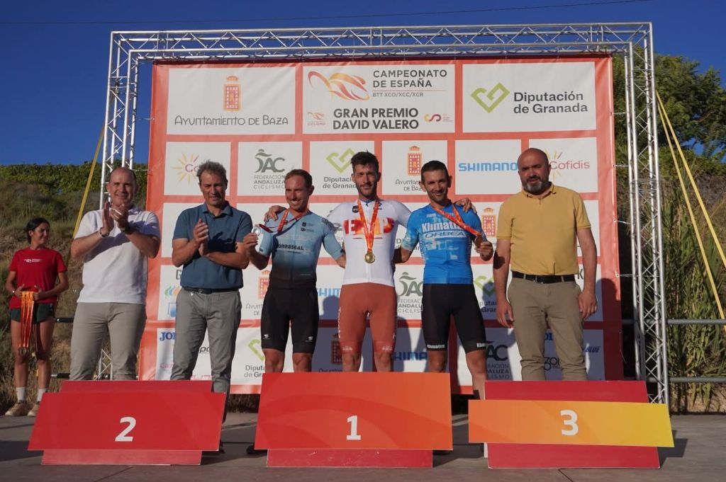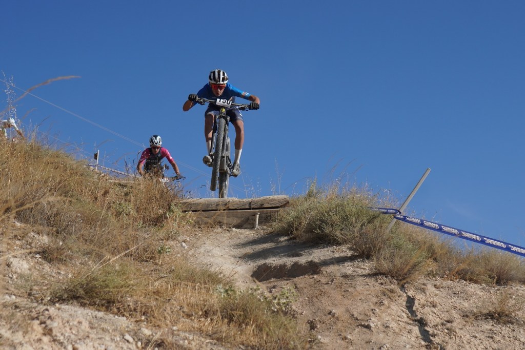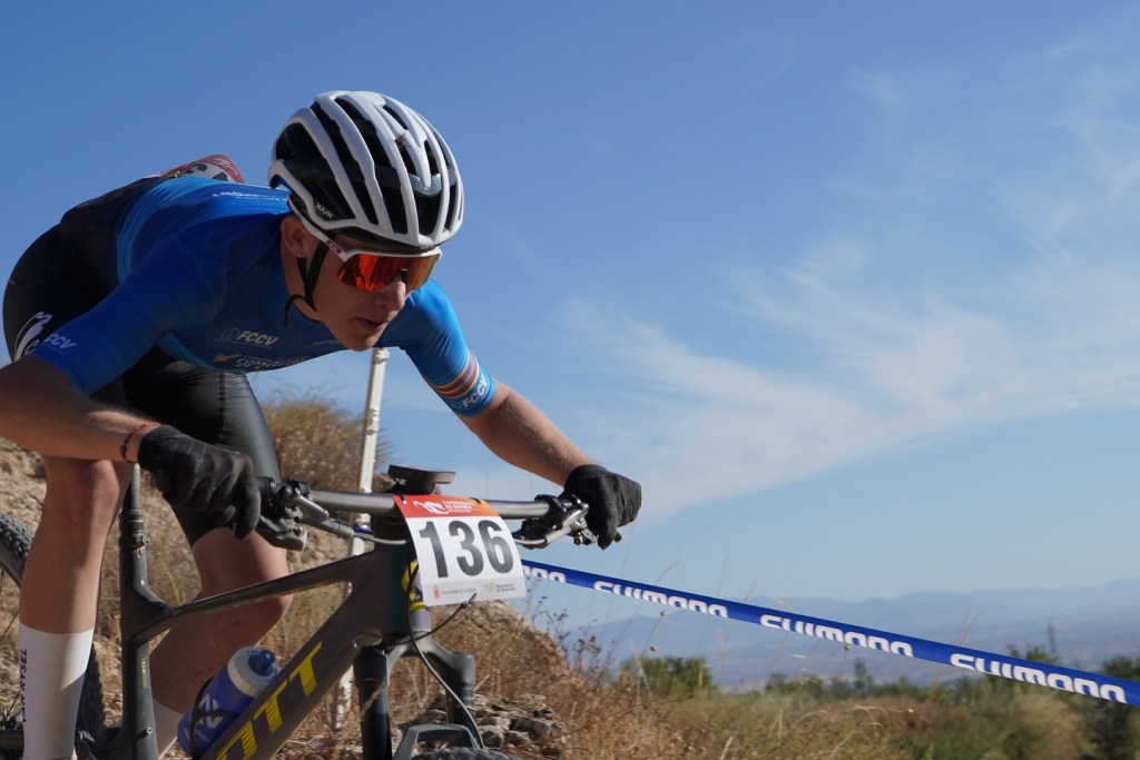 La categoría junior masculina ha sido la encargada de abrir la competición a las 9:00 h en el circuito David Valero de Baza. Una emocionante carrera marcada a cuatro vueltas (más el start loop) y que ha tenido como protagonista a Benjamín Noval, campeón de España de Ciclocross y de Carretera, y que su buen pico de forma le ha llevado a correr este campeonato de XCO. El asturiano partía el último de los 74 corredores en parrilla y la remontada que ha efectuado ha sido antológica. En primera instancia, los andaluces Guillermo Parrado e Iker Pérez y el cántabro Raúl López fueron los que imprimieron un fuerte ritmo en cabeza de carrera. Ya en la segunda vuelta, Parrado fue el que se quedó en solitario, tratando de marcar las diferencias con sus rivales; sin embargo, Benjamín Noval ya se encontraba dentro del top 10, y realizando unos espectaculares registros a sus pasos por vuelta. La ventaja del andaluz con Noval se estabilizó en torno a los 30 segundos a mitad de carrera, cuando el asturiano sobrepasaba al también andaluz Iker Pérez en la segunda plaza. Pero, a partir de ese momento, el de MMR dio el máximo por alcanzar la primera posición. Parrado entró en la última vuelta con tan solo 16 segundos de diferencia, pero Noval en las subidas fue capaz de recortar ese tiempo con solvencia. A falta de tres kilómetros para la meta, el asturiano rebasó al andaluz y se dirigió hacia una victoria de ensueño en el circuito David Valero. Benjamín Noval cruzó la línea de meta con un tiempo de 1:07:29, llegando un meritorio Guillermo Parrado a 41 segundos e Iker Pérez a 1:49. Un título de ensueño para este junior de primer año que está deslumbrando en todas las disciplinas que corre. Vicent Sansano cruzó la meta en la 18ª posición, seguido por Marc Moncho (25º) y Xavi (27º).