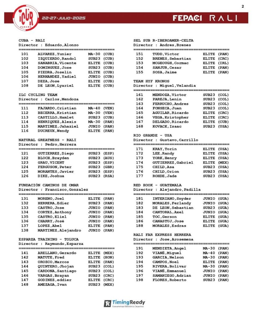 Equipos internacionales confirmados: Team Medellín (Colombia), Natural Greatness Rali Alé (España), Ropa Deportiva H y F (Colombia), Selección de Cuba, Natural Greatness Rali Alé (España), City Bikes (Estados Unidos), Río Grande (Estados Unidos), Team Costa Frut (Costa Rica), Ciclo Café (Costa Rica), ManzaTé (Costa Rica), Esparza Trainning (México), Red Hook (Guatemala) y Fuetiao Cycling Team (República Dominicana).