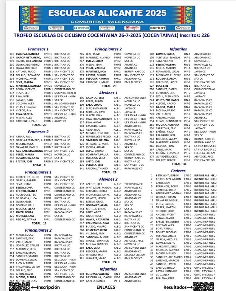 18/05 TROFEO ESCUELAS DE CICLISMO VILAJOIOSA. Clasificaciones