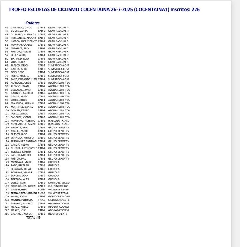 20/07 II TROFEO ESCUELAS CICLISMO Y CADETES EN BIGASTRO. Clasificaciones