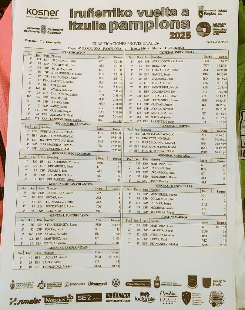 El podio de la General lo han completado Aran Boix y Héctor Fernández. Luca Martínez se lleva la Montaña; Narcis Monturiol, los Sprints Especiales; Javier Barberena, las Metas Volantes; y el Alimco-Campagnolo ha sido la mejor escuadra.