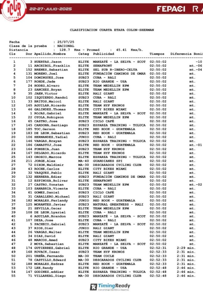 Jason Fuertes se impone al esprint en Sherman y Franklin Archibold, hoy segundo, sigue de líder de la Vuelta a Panamá. Javier Morante (Natural Greatness Rali-ALÉ) ocupa la plaza 14.