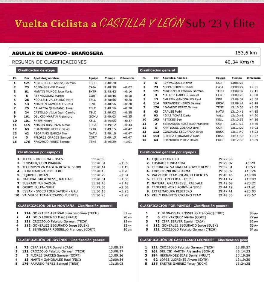 Martín Rey (Cortizo) terminaba cuarto y se asegura salvo sorpresa mañana la general de la ronda. Cepa es el líder de los jóvenes. El alicantino está realizando una competición a un gran nivel. De hecho se ha situado segundo en la General.