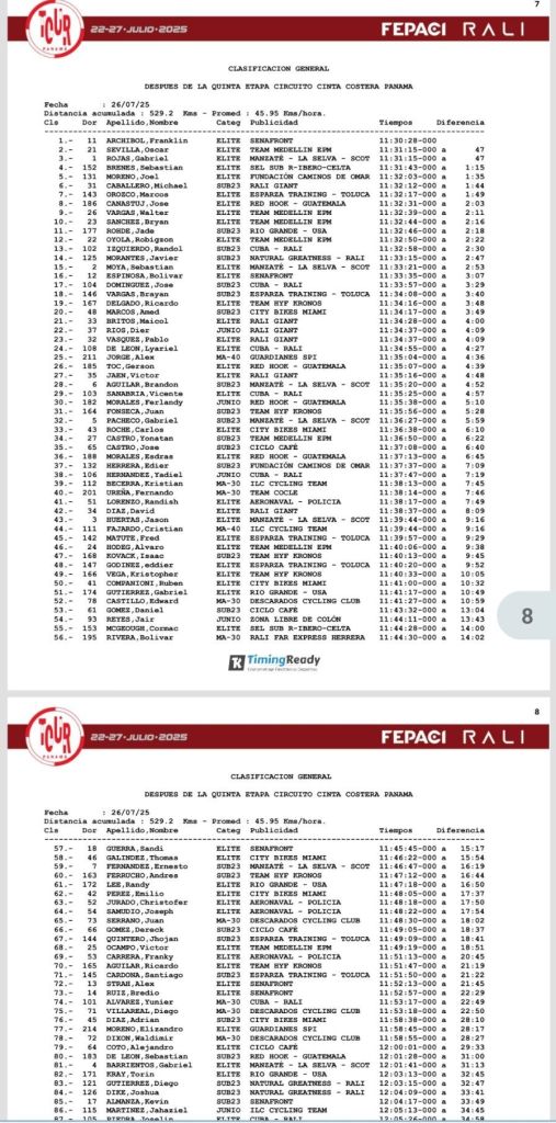 Franklin Archibol ha sido el ganador de la Vuelta a Panamá que ha finalizado hoy. Óscar Sevilla y Gabriel Rojas han completado el podio final. Puesto 14 para Javier Morante (Natural Greatness). Álvaro Hodeg se ha impuesto en la última jornada, por delante de Archibold y Sebastián Brenes. Diego Gutiérrez (Natural Greatness) ha finalizado décimo.