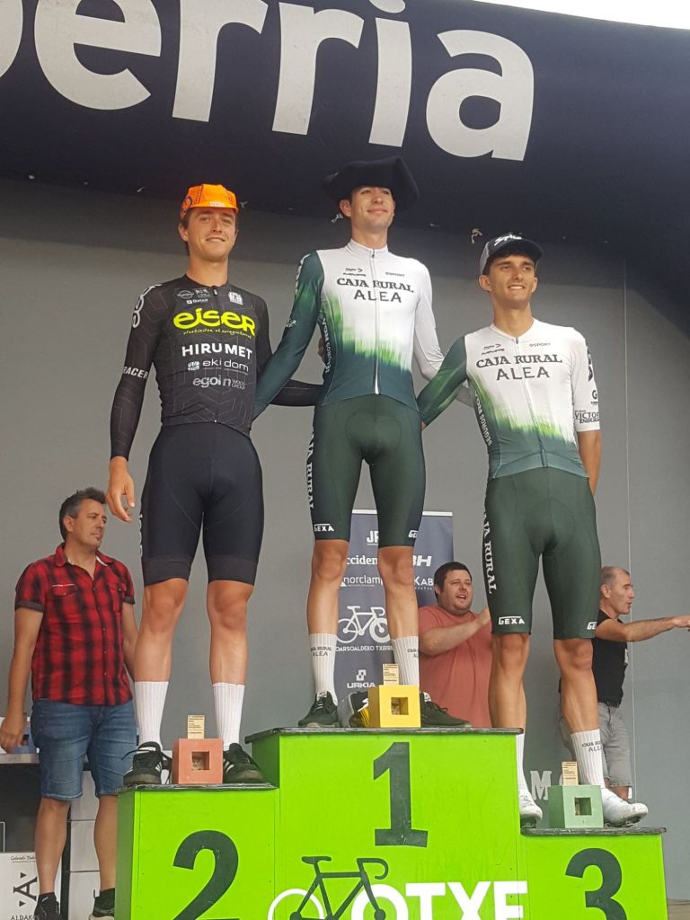 Victoria de Nil Aguilera (Filial Caja Rural) en Oiartzun, prueba puntuable para Torneo Lehendakari. Gran triunfo del catalán en solitario. Iñaki Trujillo ha sido segundo y ha completado con el tercer puesto Pablo Lospitao.