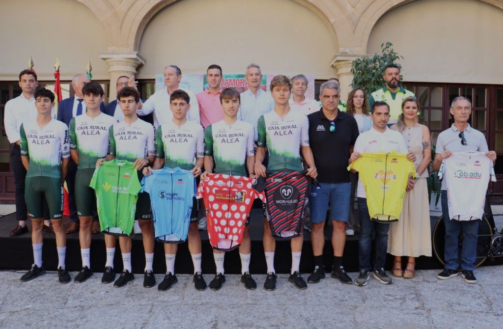 La Diputación de Zamora ha acogido esta mañana en el Palacio de la Encarnación la presentación de la Vuelta a la Provincia de Zamora 2025. El acto, que contó con la presencia de las autoridades, patrocinadores y también ciclistas del conjunto Caja Rural ALEA, sirvió como anticipo al arranque esta tarde de la contrarreloj inicial en Benavente.