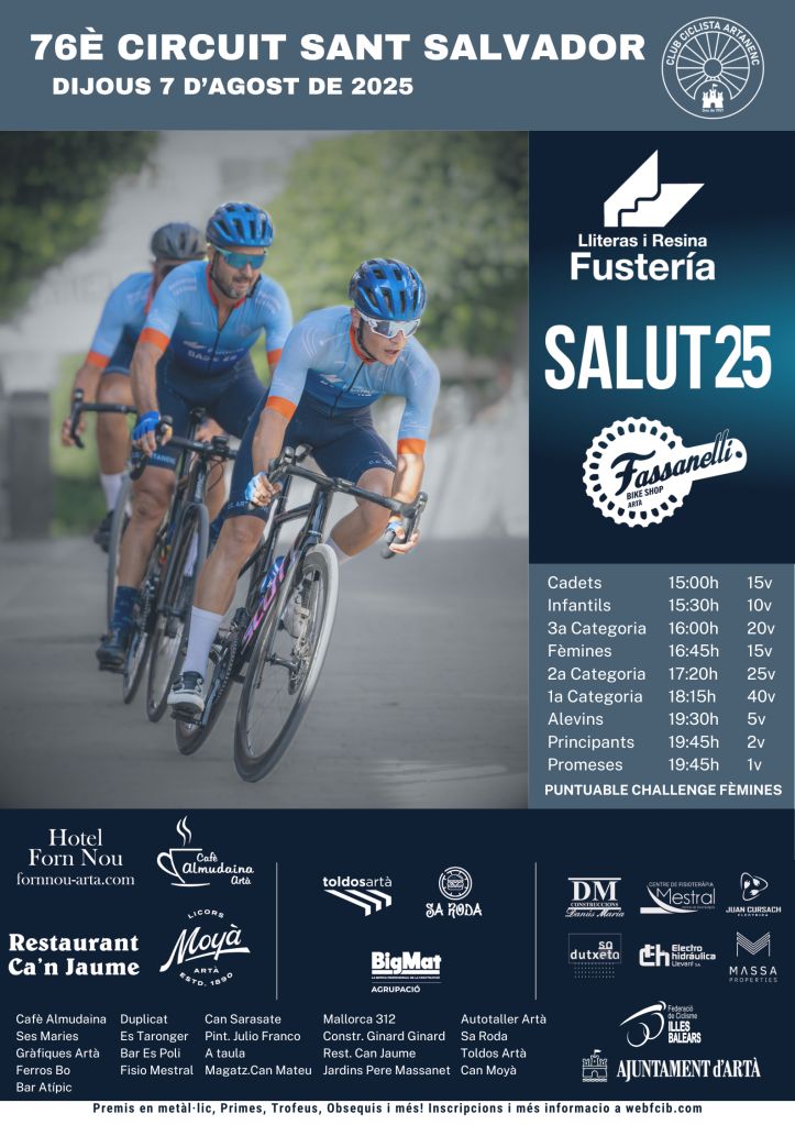 El equipo Cadete de la Fundación Benicadell disputará tres carreras más en Mallorca los días 7, 9 y 10 de agosto. Competirá en Arta, el día 7, en el Circuito Sant Salvador; el 9, en Llubia, el VIII Cursa Ciclista Penya Mallorquinista-Trofeu Conservers Rosello; y, el 10, en Sineu, el Memorial Francesc Alomar.