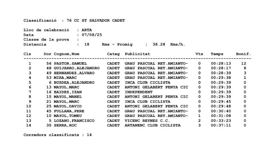 En la carrera Élite, Sub23 y Júnior, triunfo de Alejandro Gómiz (BiciCosta) por delante de Xavier Cañellas (Anicolor) y de Lluc Dols (Saxun Extrusax-Primoti), que ha sido el primer júnior.