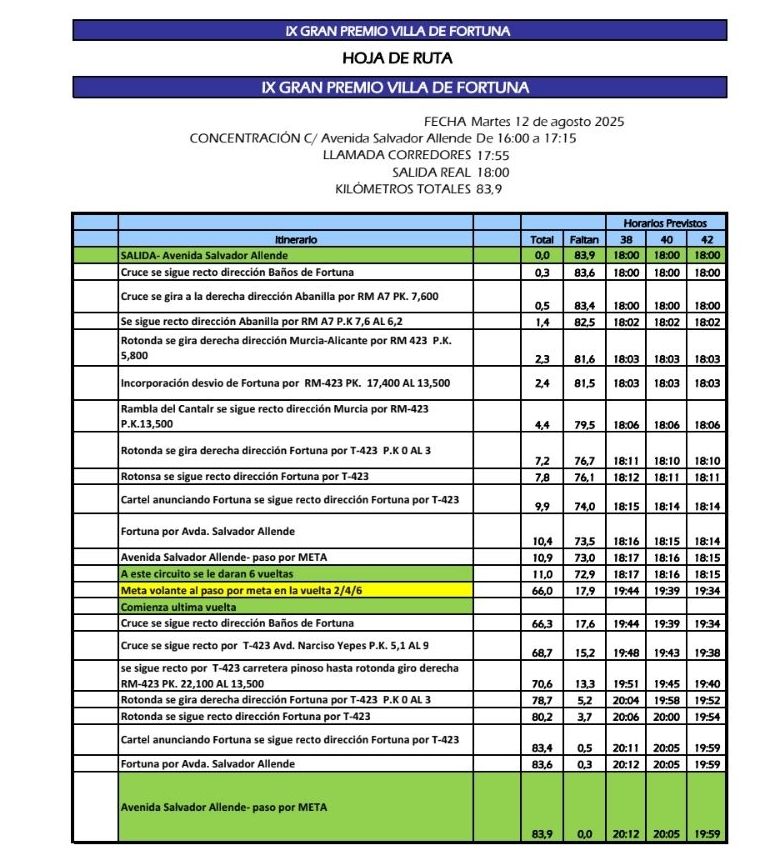 Hoy se disputa por carreteras de la Región de Murcia el Gran Premio Villa de Fortuna para las categorías Élite, Sub23 y Máster y que dará comienzo a las 18 horas. Una prueba con 68 años de historia, que estará organizada por el CC Puente Tocinos. Lista de preinscritos.