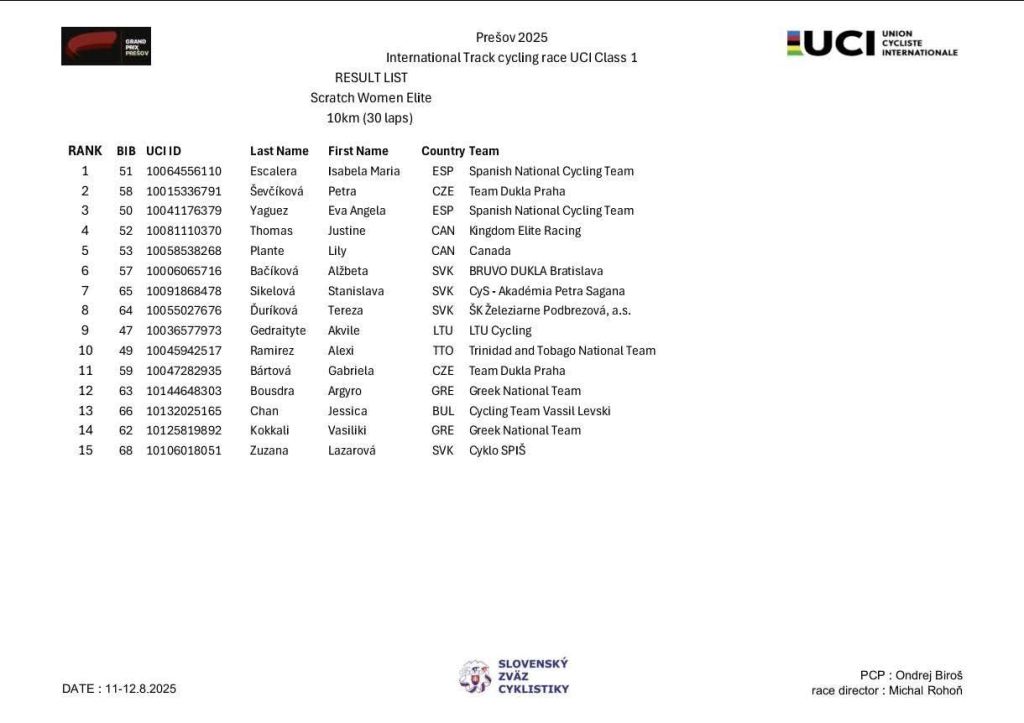 Izzy Escalera se lleva la victoria en el Scratch del G.P. Presov II. Fantástica actuación de pistard española, que ha atacado a falta de cinco vueltas para ganar en solitario. Eva Anguela se ha colgado el bronce.