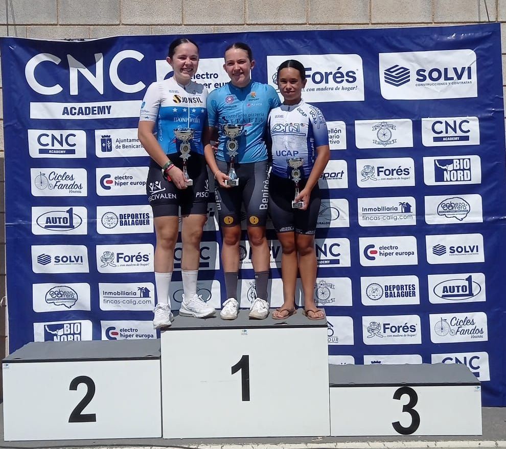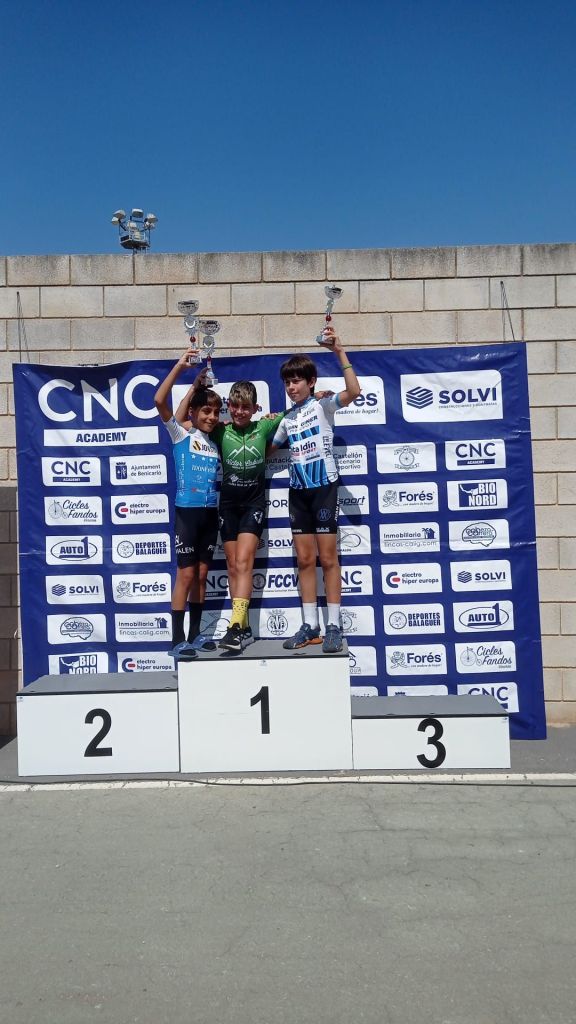 Carol Pareja (In Bike) y Héctor Gil (Víctor Cabedo) han ganado en Alevines 1; Claudia Vilar (Orbel) y Jan Madrid (Sant Bol), en Alevines 2; Vera Martínez (Vila-real) y Kaiet Zarrantz (Saltoki), en Principiantes 1; Laura García (Senglars) y Mario de Zayas (Talleres Grañana), en Principiantes 2; Alma Martínez (Vila-real) y Xavi Vicent (Vila-real), en Promesas 1; yÁleix Mercader (Benicarló), en Promesas 2.