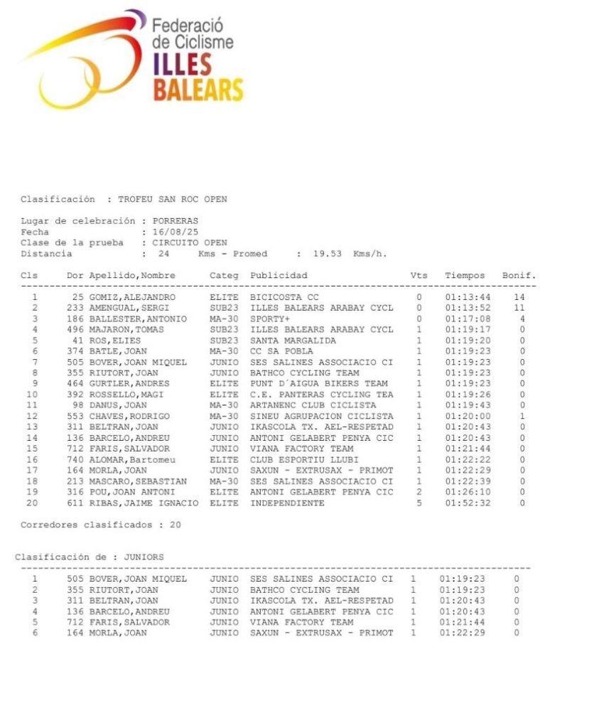 Alejandro Gómiz (BiciCosta) se ha impuesto hoy en Porreras en el Trofeu San Roc Open. Sergi Amengual (Illes Balears Arabay Cycling) ha terminado segundo y Antonio Ballester (Sporty), tercero.