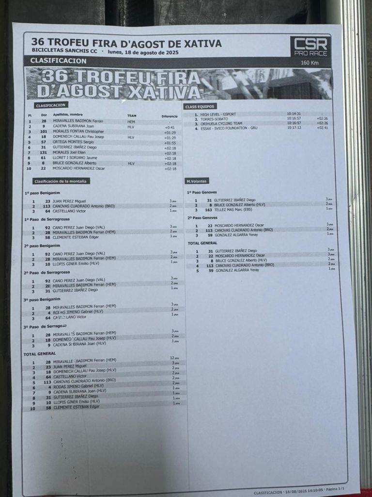 18/08 – Xátiva (Valencia). Clasificaciones