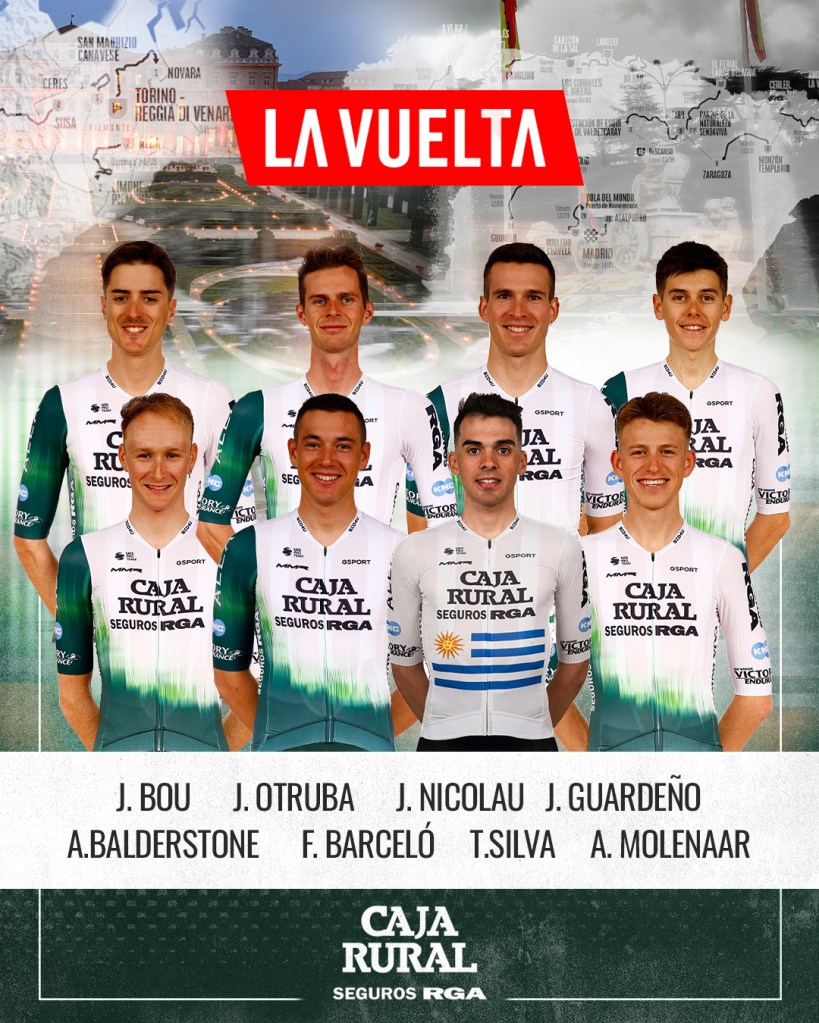 Las siete victorias conseguidas hasta el momento demuestran la buena temporada de Caja Rural-Seguros RGA hasta la fecha y la dificultad de los técnicos a la hora de seleccionar un bloque con el que competir frente a muchos de los mejores ciclistas del pelotón en esta edición de La Vuelta. Un conjunto sólido y capaz de plantar batalla en todos los terrenos en el que destaca la presencia de tres debutantes: El uruguayo Thomas Silva –‘pichichi’ del equipo con tres triunfos-, el checho Jakub Otruba -ganador de etapa en el G.P. Torres Vedras- y el alicantino Jaume Guardeño.