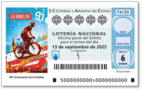 Loterías y Apuestas del Estado dedica el décimo de Lotería Nacional del sábado 13 de septiembre al 90º aniversario de La Vuelta, la competición ciclista más importante de España y una de las más prestigiosas del mundo.