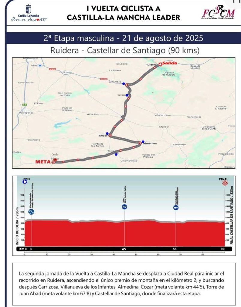 Etapa 2. Ruidera – Castellar de Santiago. 21 de agosto de 2025. 10.30h. 89.9Km.