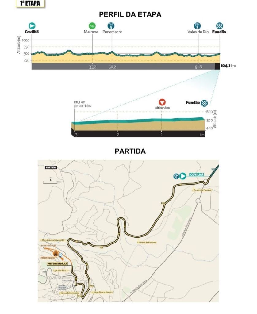 Comienza en Covilhã (14:00 h) y se dirige a Fundão (16:45 h), en un recorrido de 104,1 kilómetros, con una meta lanzada (Meimoa), dos etapas de montaña de tercera categoría (Penamacor y Vales do Rio) y un final ligeramente en ascenso. Al día siguiente, otra etapa de montaña, con un total de 94,4 kilómetros, entre Trancoso (12:30 h) y Almeida (15:00 h). Entre medias, dos finales rápidas (Vila Franca das Naves y Vermiosa) y dos puertos de montaña de tercera categoría (Alto do Palurdo y Almeida).