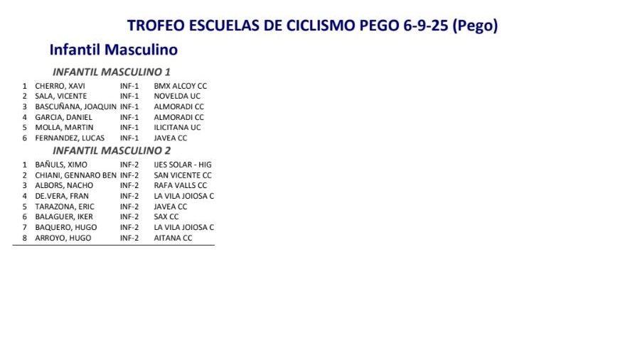 06/09 TROFEO ESCUELAS DE CICLISMO PEGO. Clasificaciones
