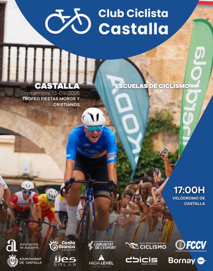 El sábado, 13 de septiembre, se disputa el Trofeo Fiestas Moros y Cristianos de Escuelas de Ciclismo Castalla. La competición, organizada por el CC Castalla, comenzará a las 17 horas y es puntuable para la Challenge de Escuelas de la provincia de Alicante. Se han inscrito 135 corredores.