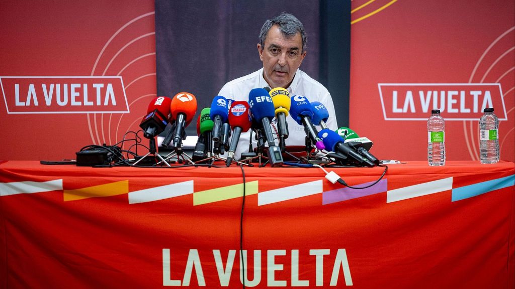 Javier Guillén, director de La Vuelta, ha comparecido ante los medios de comunicación para explicar sus conclusiones de lo vivido a lo largo de las tres últimas semanas, cuando la carrera comenzó en el Piamonte italiano y terminó con una jornada final del domingo en Madrid que tuvo que ser cancelada a 56 kilómetros de la línea de meta por los graves incidentes protagonizados por manifestantes propalestinos que detuvieron al pelotón e invadieron varias calles de la capital de España y obligaron a la intervención policial. Guillén ha empezado lamentando y condenando lo sucedido el domingo: “Las imágenes hablan por sí solas. Es inaceptable lo que ocurrió en el circuito. No podemos sacar nada bueno de lo que sucedió ayer y lamento mucho la imagen que se dio. Creo que no se debería de repetir”.