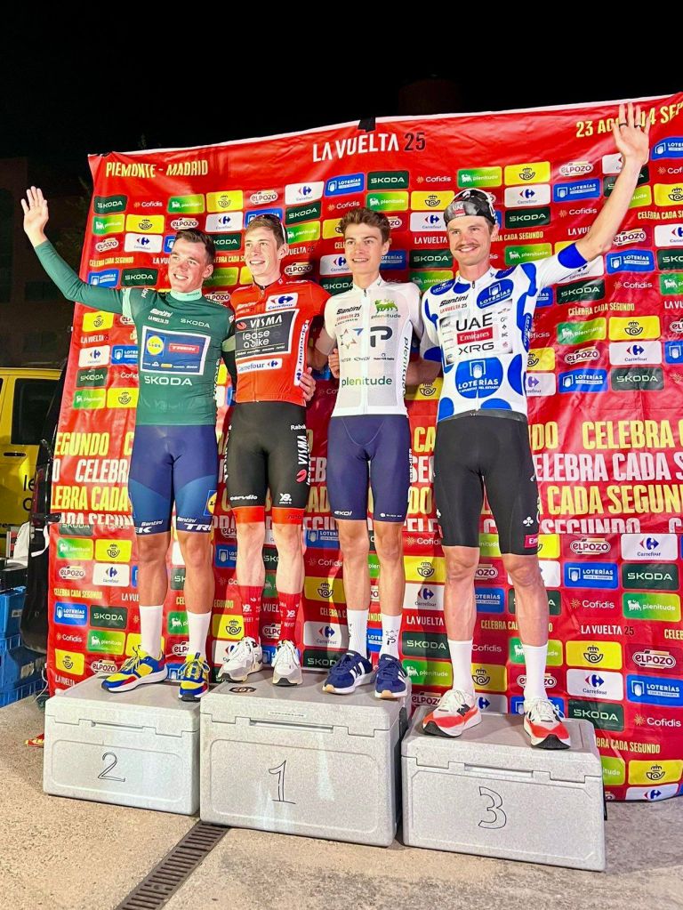 La Vuelta también ha coronado el danés Mads Pedersen (Lidl-Trek), ganador de una clasificación por puntos que ya había conquistado en 2022, el australiano Jay Vine (UAE Team Emirates-XRG), que por segundo año se ha llevado el maillot de lunares como ganador de la clasificación de la montaña, el americano Matthew Riccitello (Israel-Premier Tech), mejor joven después del hundimiento de Giulio Pellizzari en el día de ayer camino a la Bola del Mundo, UAE Team Emirates-XRG como ganador de la clasificación por equipos y al catalán Joel Nicolau (Caja Rural-Seguros RGA) como corredor más combativo.