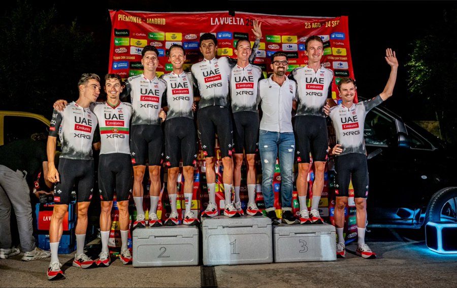 Pese a que en un primer momento los aficionados hicieron notar en redes sociales que Juan Ayuso no había acudido a la ‘clandestina’ ceremonia, por no aparecer en las imágenes, sí estuvo junto al resto de UAE como vencedores por escuadras.