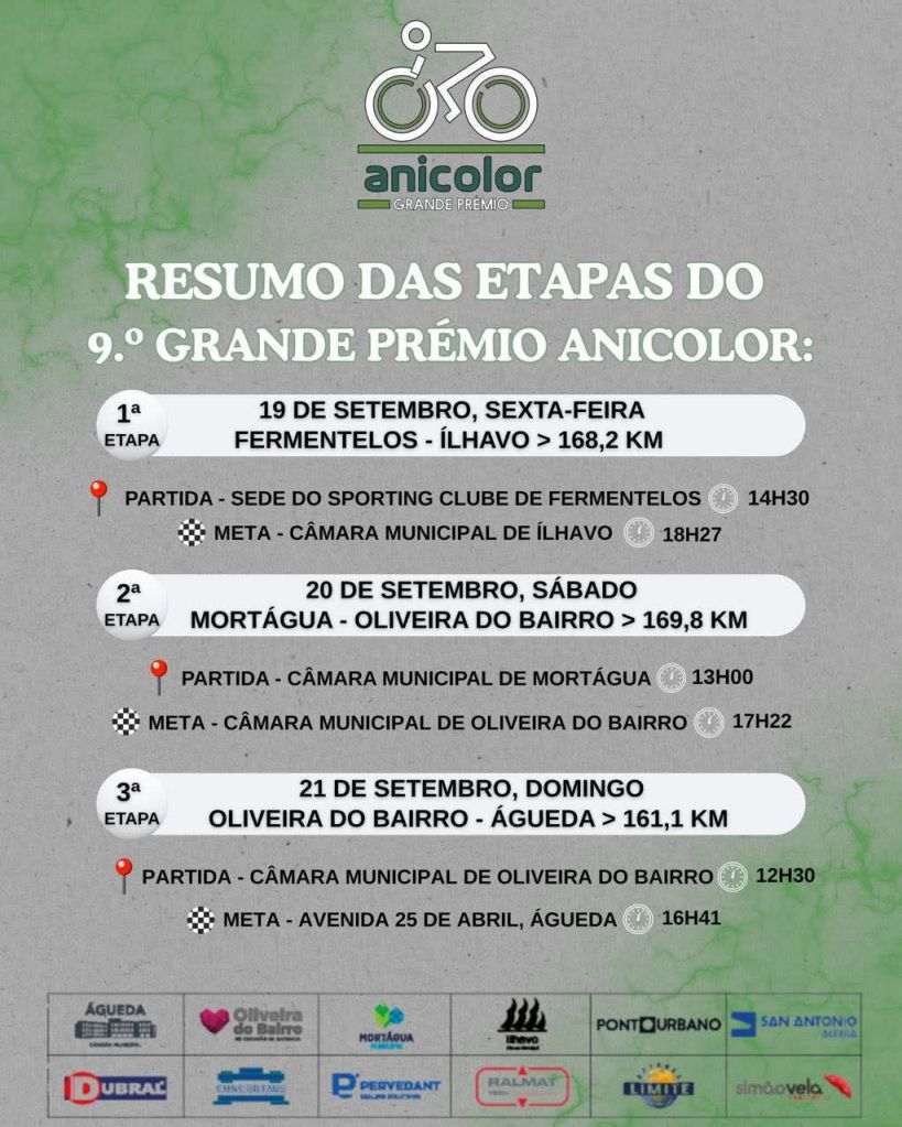 El 9.º Grande Prémio Anicolor 2025 se llevará a cabo en Portugal los días 19, 20 y 21 de septiembre. Arranca este viernes, el primero de tres días de competición, entre Fermentelos y Águeda, con un total de casi 500 kilómetros. Participarán ocho de los nueve equipos continentales portugueses, junto con cinco equipos de clubes portugueses y cuatro equipos de clubes españoles entre los que se encuentra el Orihuela Cycling Team y el Essax Svico Foundation. Jaume Lloret, Ángel Marín, Víctor Castellano, Pol Queralt, Jaime Martínez, Alberto Martínez y el recién llegado Ferran Miravalles llevarán el maillot de la escuadra de Manuel Mateo, mientras que Juan Miguel Pérez alineará a Mika Vijfvinkel Tadeo Rodríguez, Héctor Teruel, Óscar Moscardó, Miguel Juan, Marco Garzelli y Antonio Cánovas.