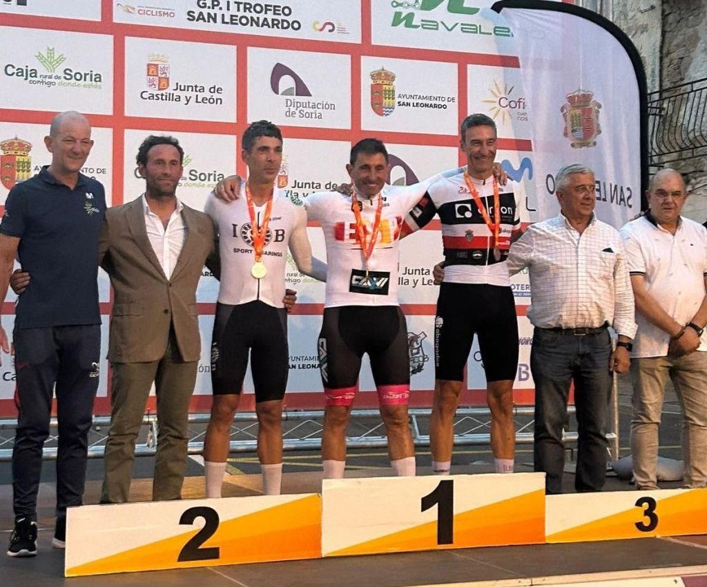 La localidad de San Leonardo de Yagüe (Soria) ha acogido hoy el inico del Campeonato de España Máster de ciclismo en carretera, un G.P. I Trofeo San Leonardo. Las pruebas de contrarreloj han abierto el Nacional. Raúl Patiño (Aluminios Cayvi) se ha proclamado campeón en M50A. La plata ha sido para Francisco Antonio Quesada (Catral-Telfy), en M50B, mientras que Sergio Verdú (Aluminio Cayvi) se ha colgado el bronce en M30B y Rima Gramaliauskiene (UPV) en M50A.