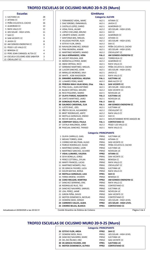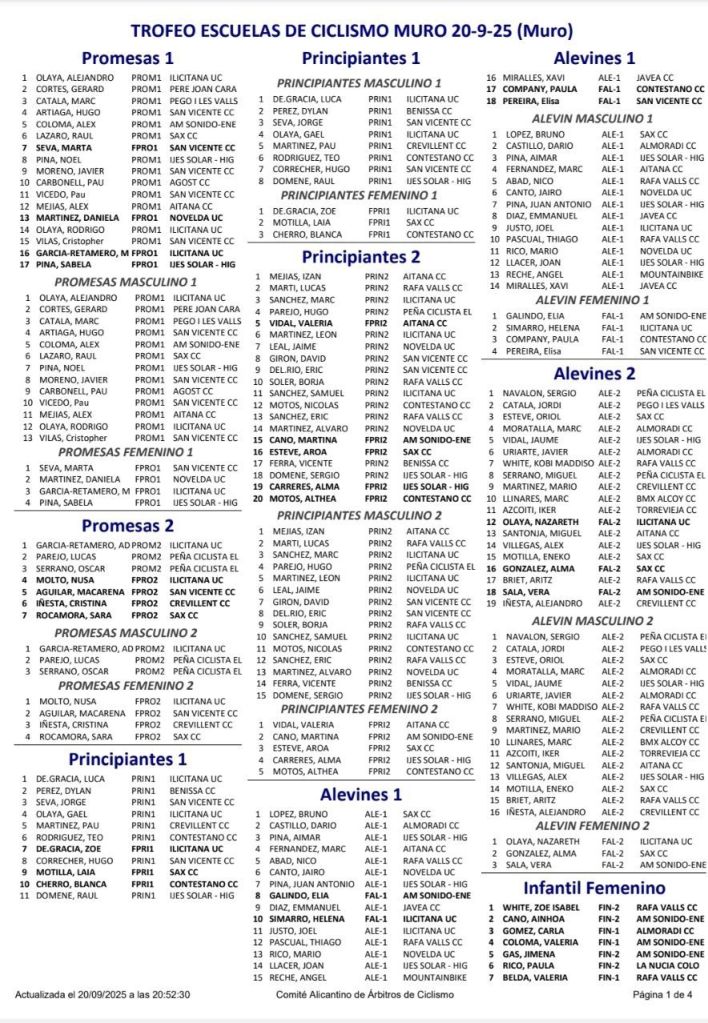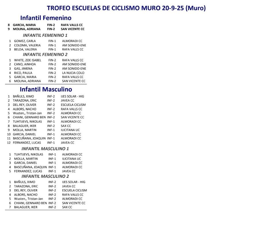 13/09 TROFEO ESCUELAS DE CICLISMO CASTALLA. Clasificaciones