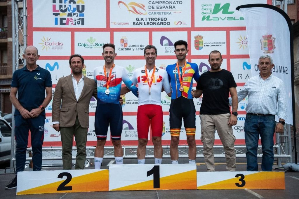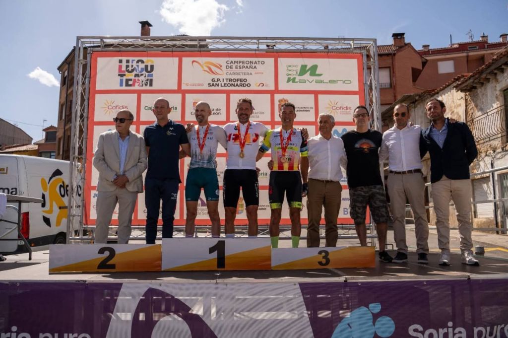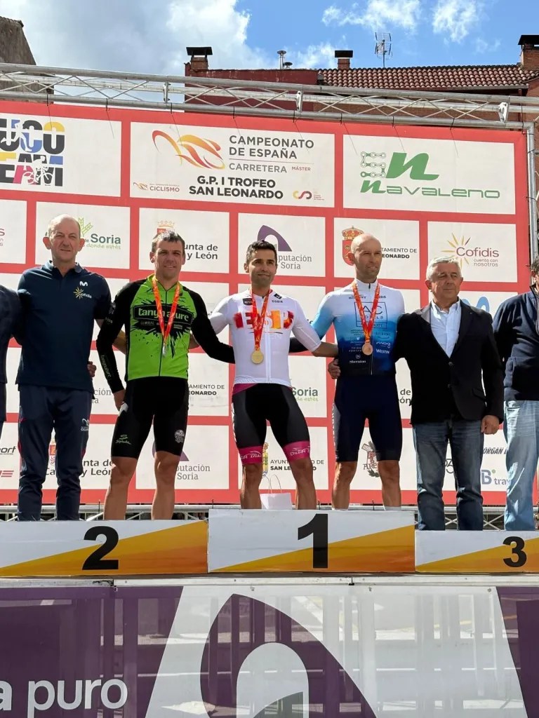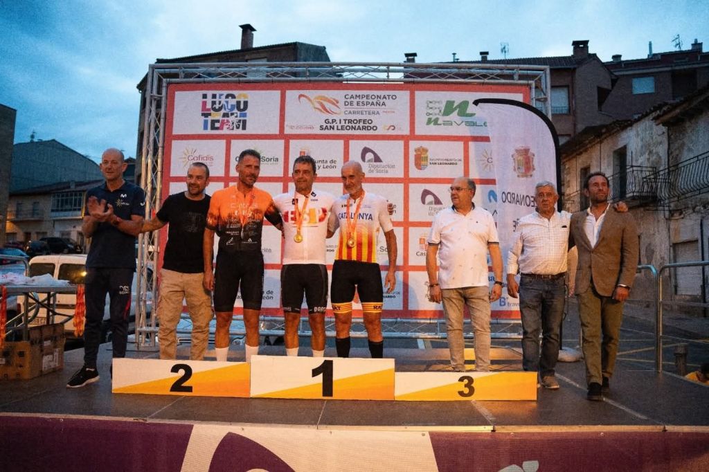 José Javier Gil (Aluminios Cayvi), nuevo campeón de España de la categoría Máster 40 masculina A, reconoce que tenía «una espina clavada en Soria, ya que hace siete años perdí el oro debajo de la pancarta de meta. Por eso tenía al capital castellanada apuntada en mi disco duro. En un principio, cuando hace unos meses vi el recorrido me pareció que era muy llano y no tenía nada que hacer. Pero una vez ahí me di cuenta que estaba equivocado y que el circuito era muy duro y se adaptaba a mis características. A falta de cinco kilómetros, sabiendo que llegando al esprint no tenía nada que hacer, arranqué del grupo de los favoritos y me fui sin mirar atrás a meta. Me la jugué y conseguí llegar primero. Esto es la recompensa al esfuerzo y sacrificio que vengo haciendo desde hace años entrenando entre las cuatro y las cinco de la mañana porque en otros horarios no puedo».