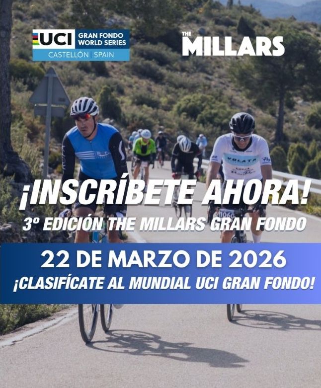 Ya están abiertas las inscripciones para la III edición de The Millars Gran Fondo, que tendrá lugar el 22 de marzo de 2026 en Castellón de la Plana.